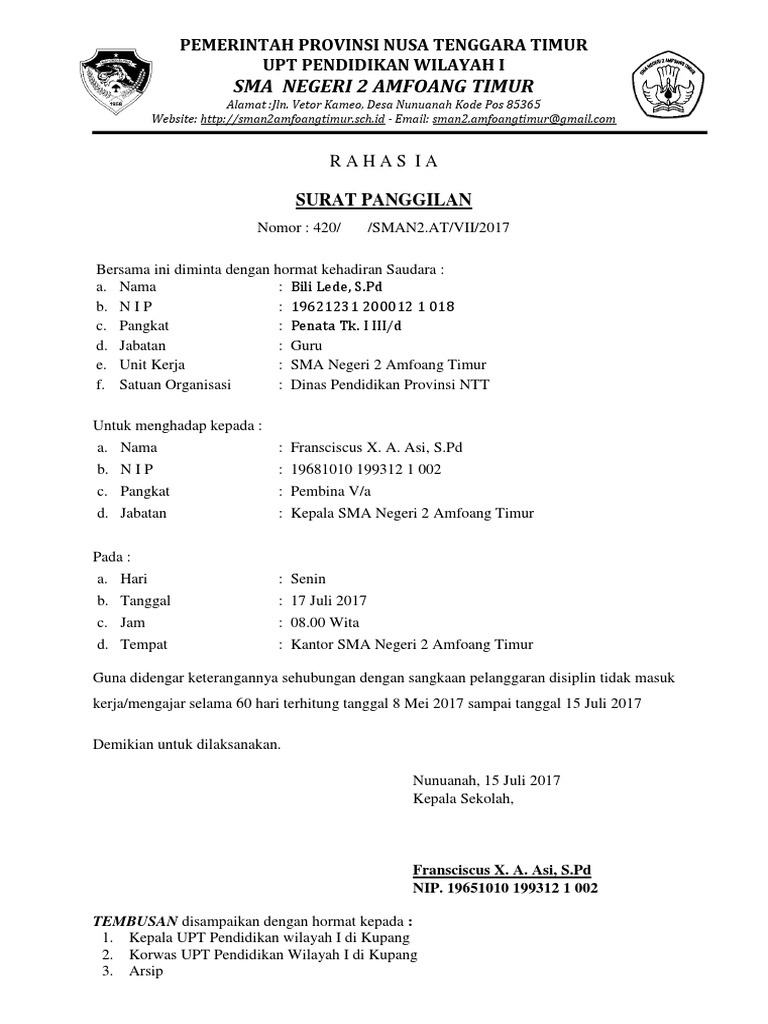 Pdf Contoh Surat Panggilan Surat Panggilan I Ii Nomor Freintz Joseph Academia Edu