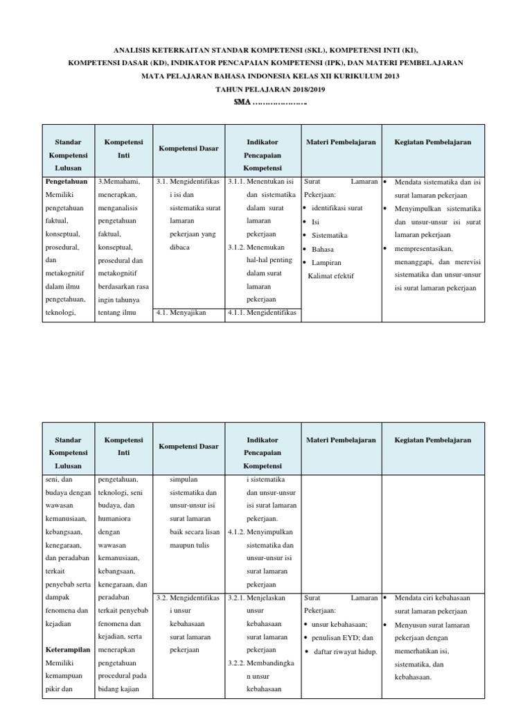 Rpp Surat Lamaran Pekerjaan Kd 3 1 Dan 4 1 Kelas Xii K 13 2018 2019 Docx