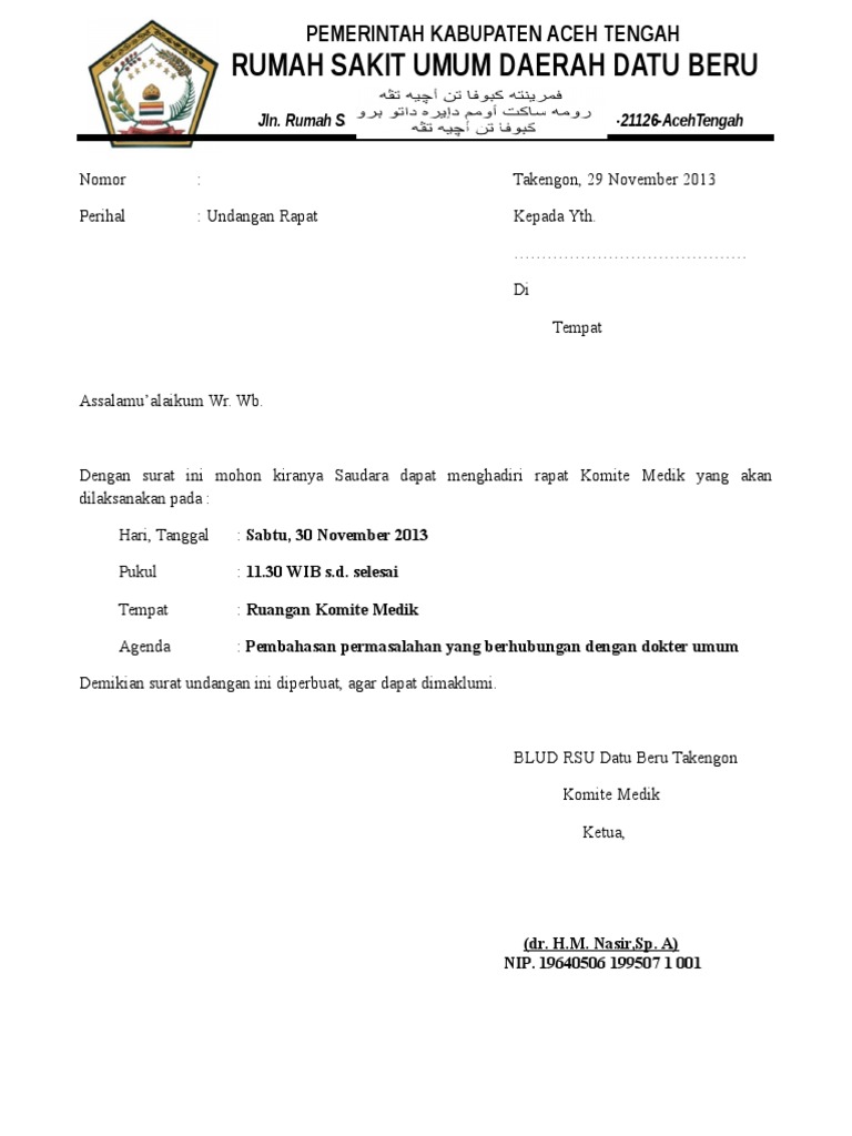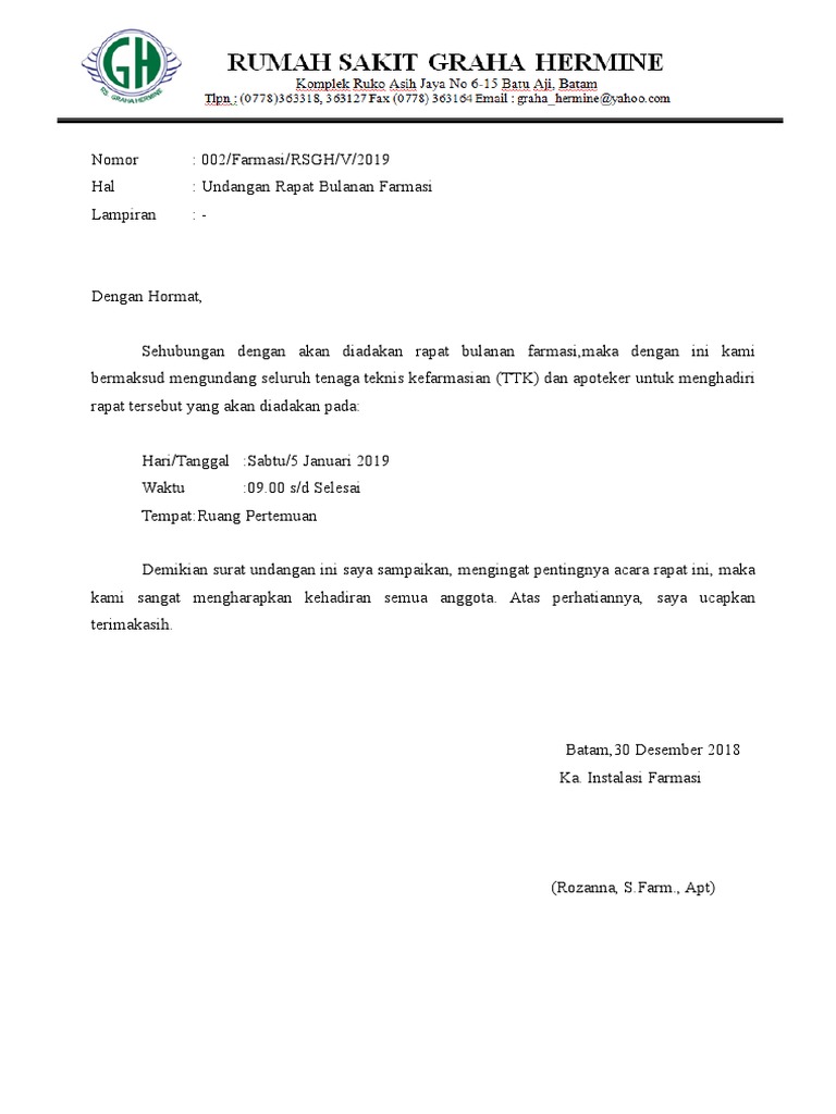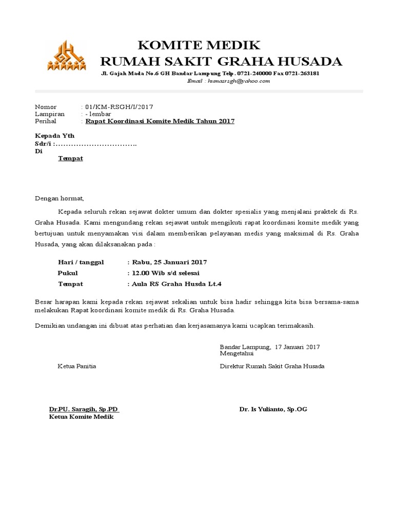 Surat Undangan Rapat Rumah Sakit