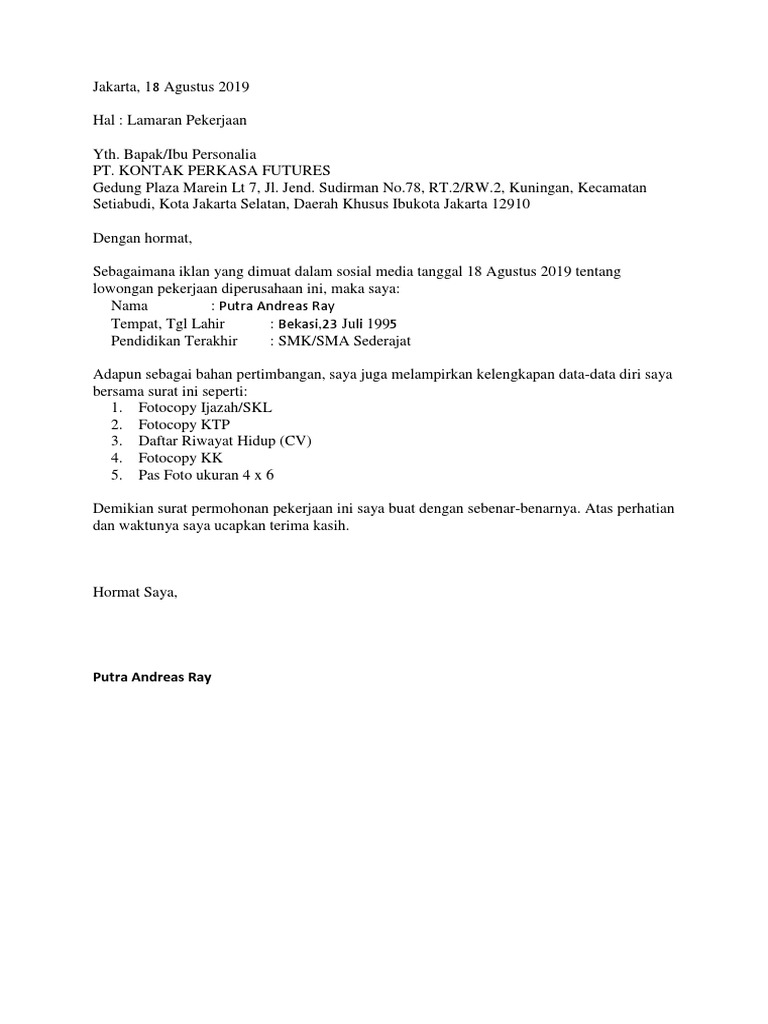 Contoh Surat Lamaran Kerja Di Hotel Untuk Berbagai Posisi Tip Kerja