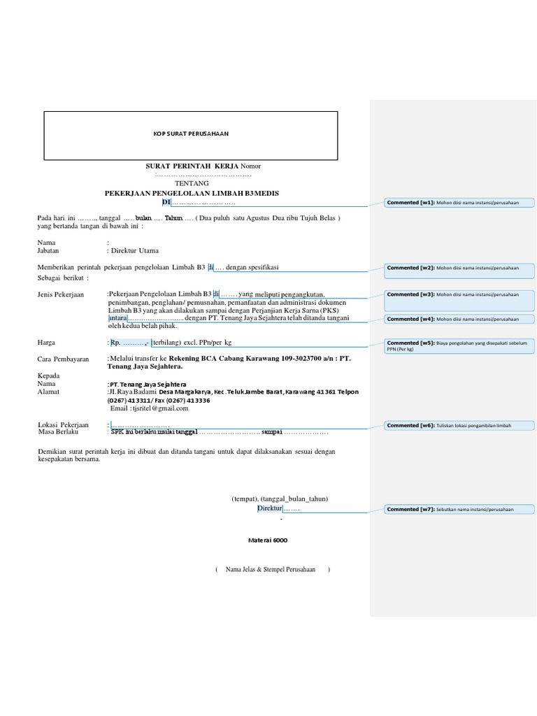 Contoh Surat Perintah Kerja Limbah