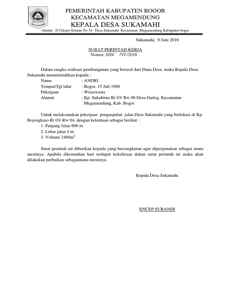 Contoh Surat Perintah Kerja Spk Di 2020 Surat Tanda Pengusaha