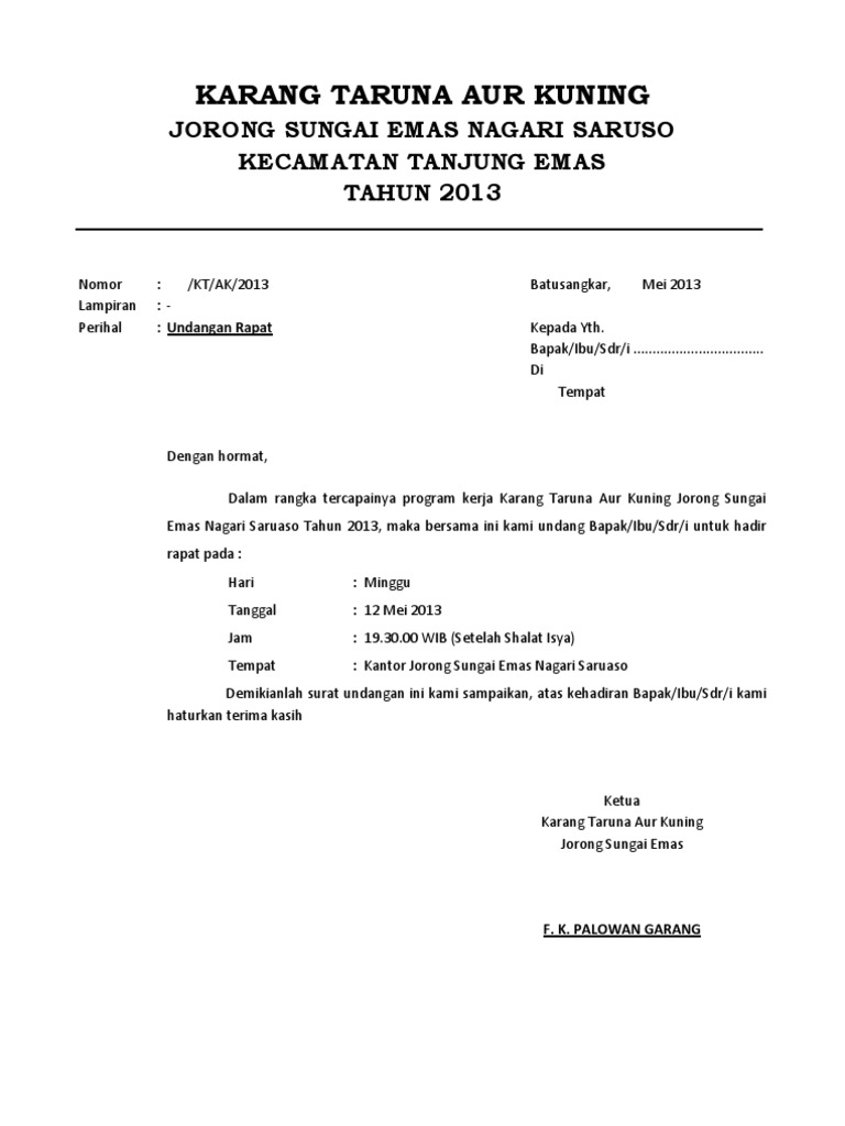 Surat Undangan Rapat Karang Taruna Aur Kuning 2013 Docx
