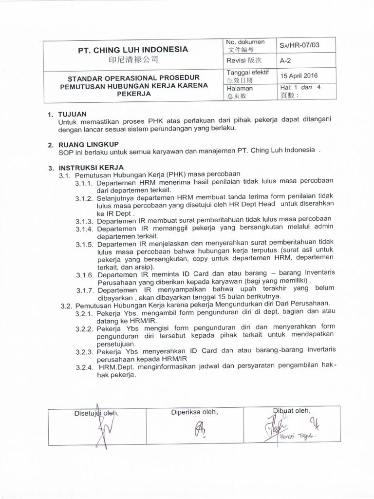 Contoh Surat Pemberhentian Kerja Pemutusan Hubungan Kerja Phk