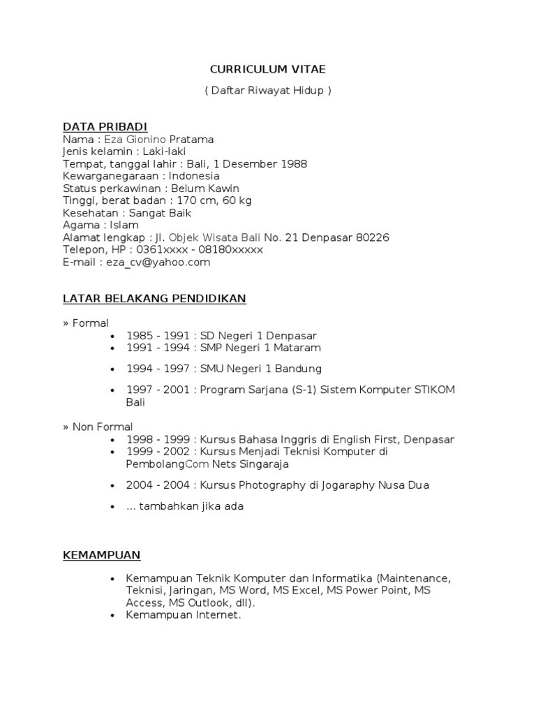22 Contoh Cv Curriculum Vitae Resume Dan Daftar Riwayat Hidup Yang Benar Woazy Com