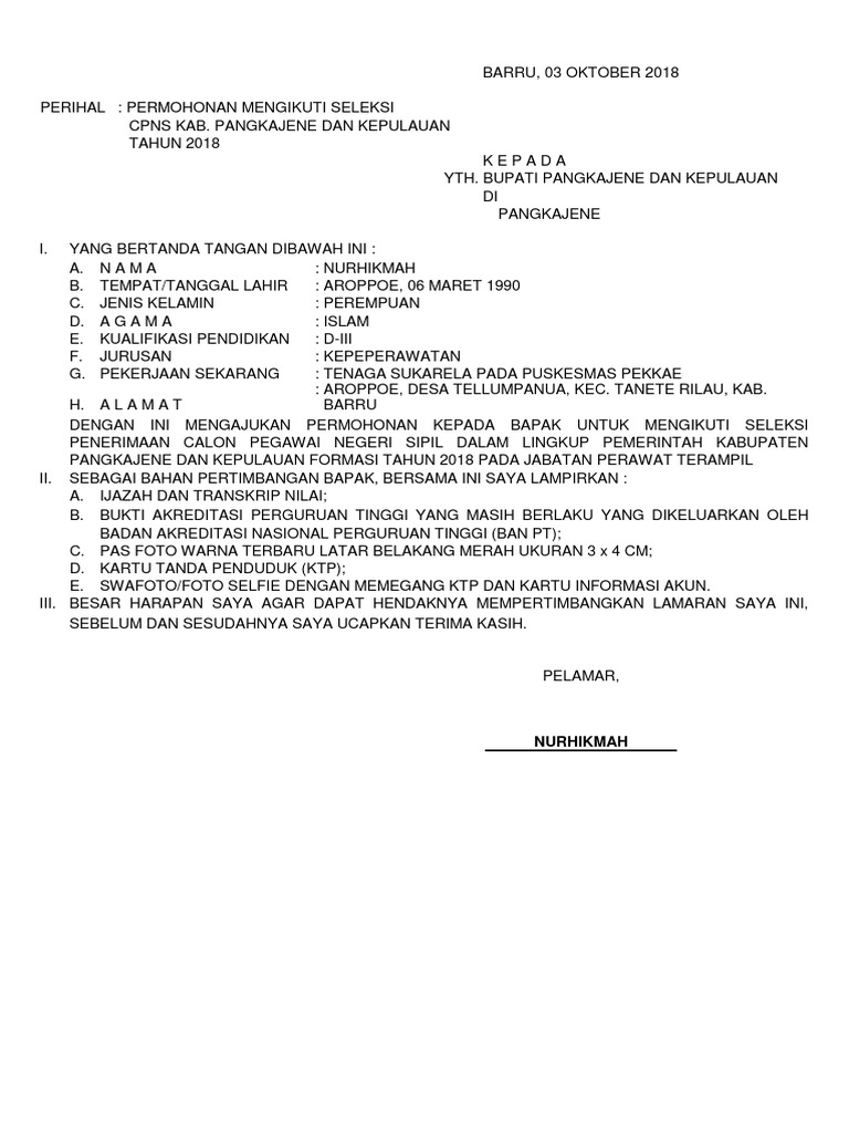 Contoh Surat Lamaran Kerja Sukarela Di Puskesmas