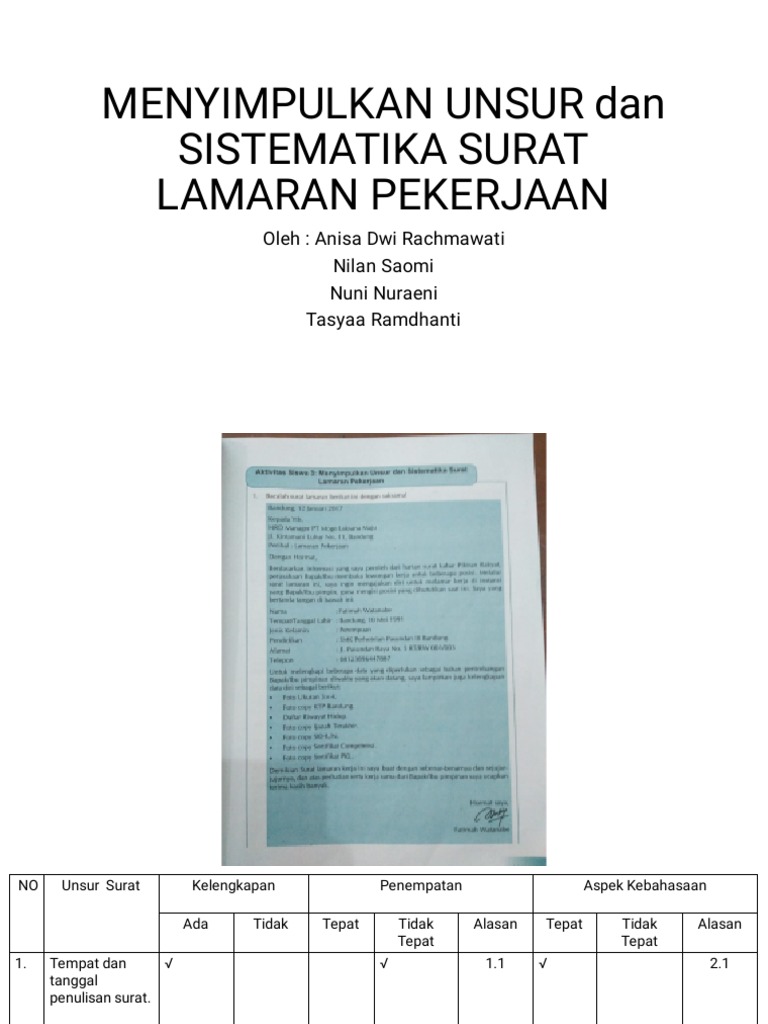 Menyimpulkan Unsur Dan Sistematika Surat Lamaran Pekerjaan
