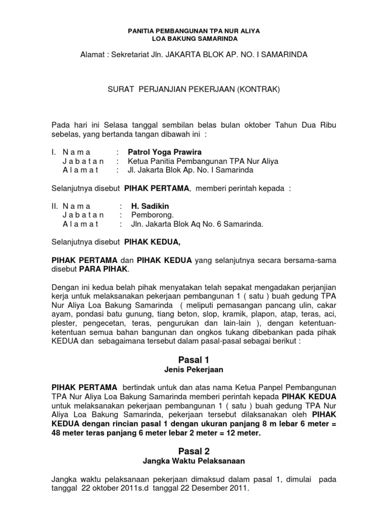 Contoh Surat Perjanjian Borongan Yang Baik Dan Benar Detiklife