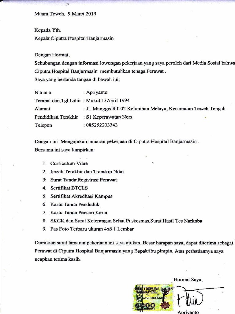Contoh Surat Lamaran Kerja Di Puskesmas Sebagai Perawat