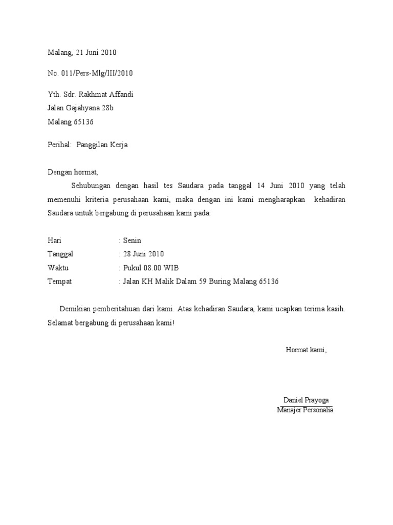 Contoh Surat Panggilan Kerja Pdf