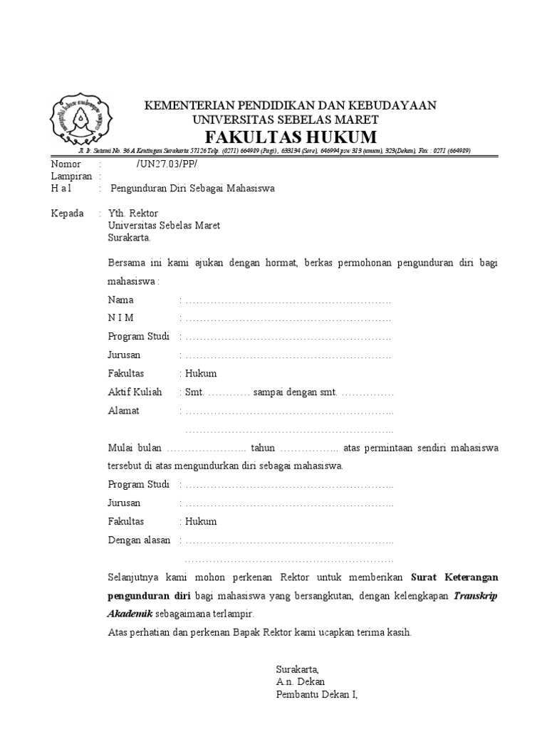 Pengunduran Diri Sebagai Mahasiswa Uns