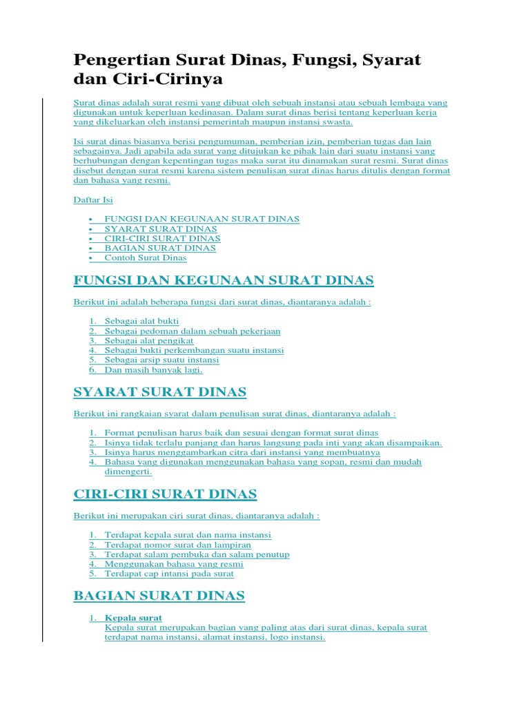 Pengertian Surat Dinas Fungsi Ciri Syarat Bagian Contoh