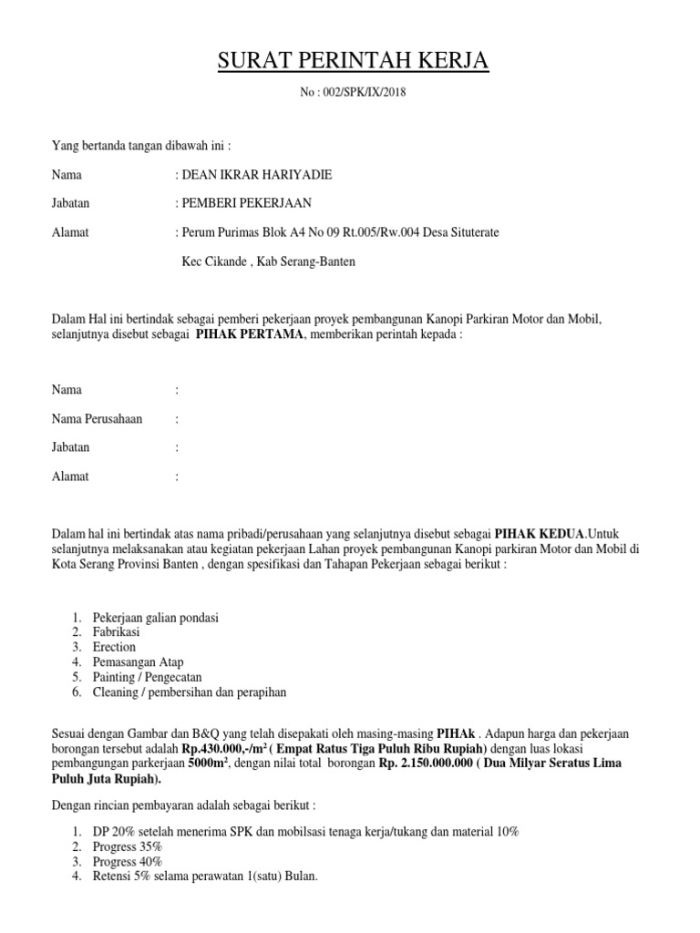 Surat Perintah Kerja Spk Adalah Contoh Seputar Surat