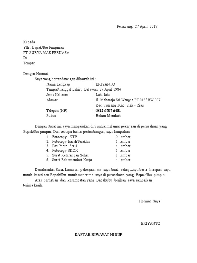 Download 25 Contoh Surat Lamaran Kerja Yang Benar