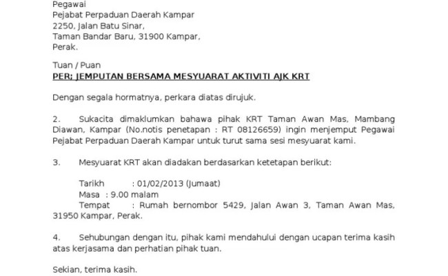 Contoh Surat Rasmi Jemputan Mesyuarat Rasmi J Cute766