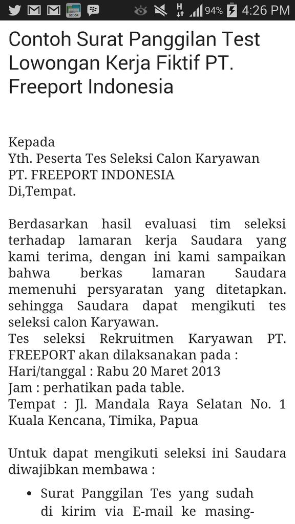 Atika Nurkoestanti Twitterren Ini Ada Contoh Penipuan Surat Panggilan Kerja Dari Freeport Hati Hati Ya Http T Co Xwcbzuucty Http T Co Njmrjjkqay
