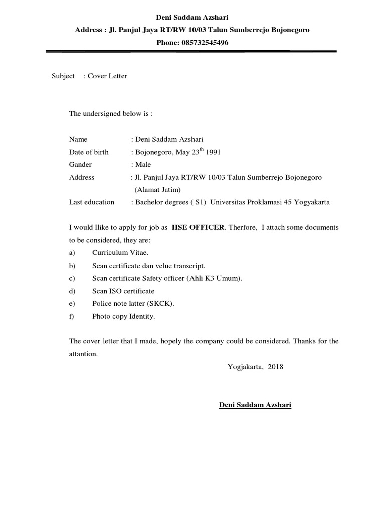 Contoh Cover Letter Safety Officer Kumpulan Contoh Makalah Doc Lengkap