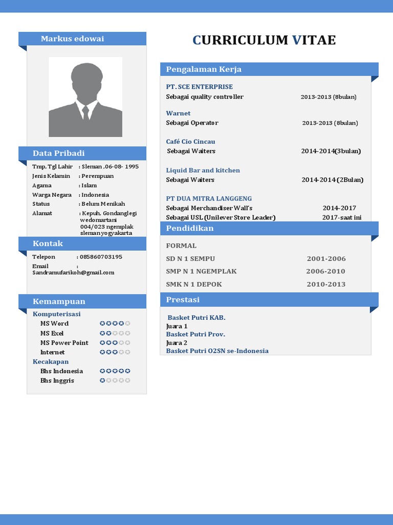 Sekilas tentang cv daftar riwayat hidup. Writing a sample curriculum vitae cv a cv displays your academic credentials and accomplishments in greater detail than a resume.