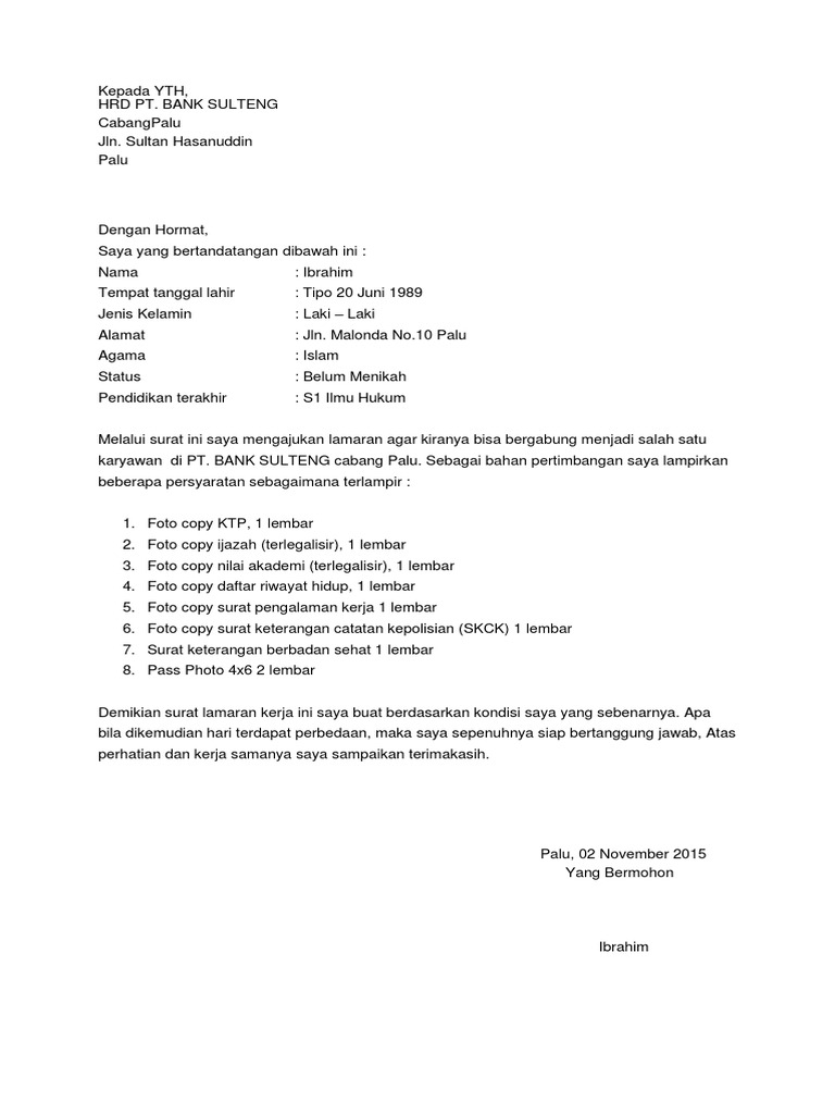 Contoh Surat Lamaran Kerja Di Bank Bri Dicontoh