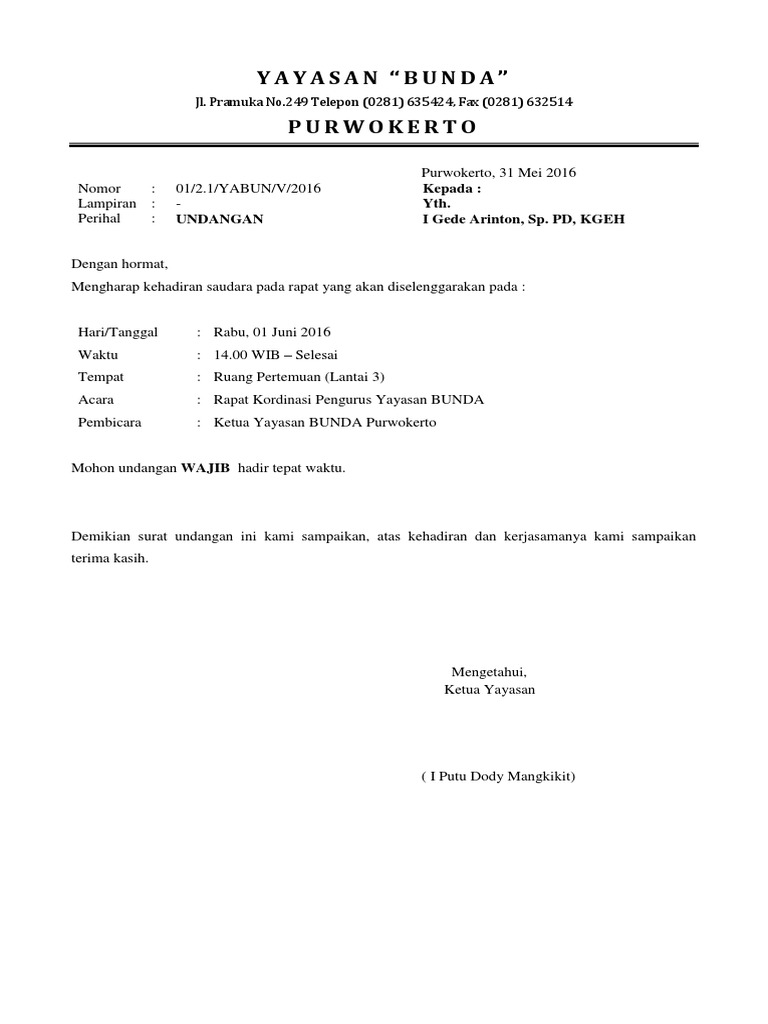 Contoh Surat Undangan Rapat Yayasan Pendidikan Surat Ras