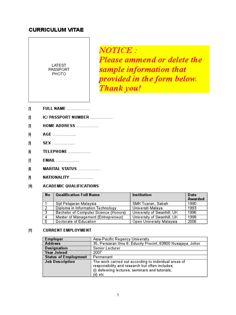 Oum Tutor Cv Template Mqa Academia Educational Stages