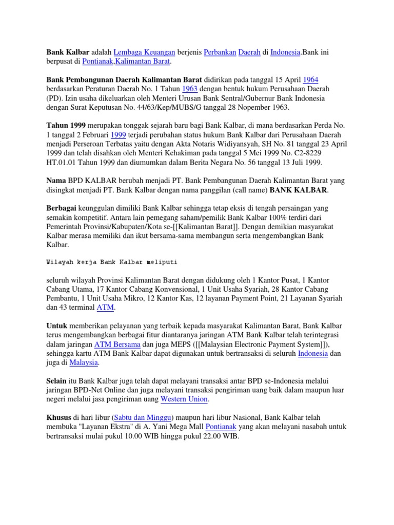 Bank Kalbar Adalah Lembaga Keuangan Berjenis Perbankan Daerah Di Indonesia