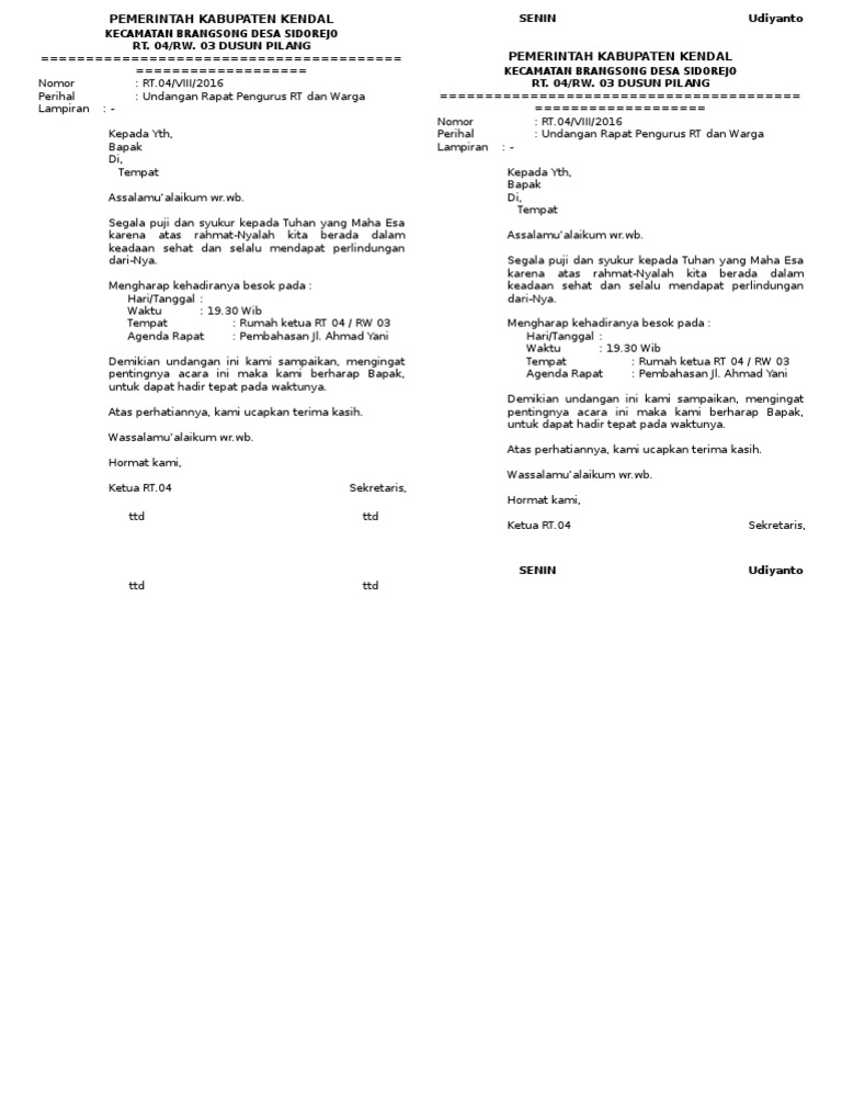 Contoh Surat Undangan Rapat Pengurus Rt