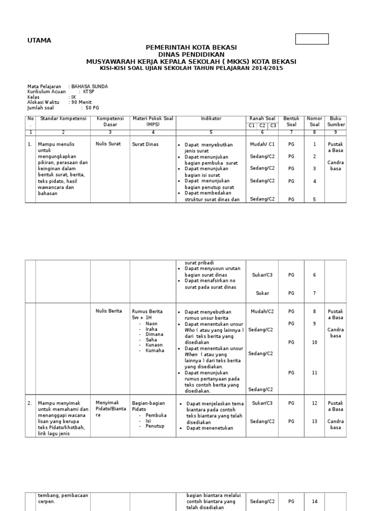 Kisi Kisi Us Bahasa Sunda Bekasi 99 Akurat Bocor