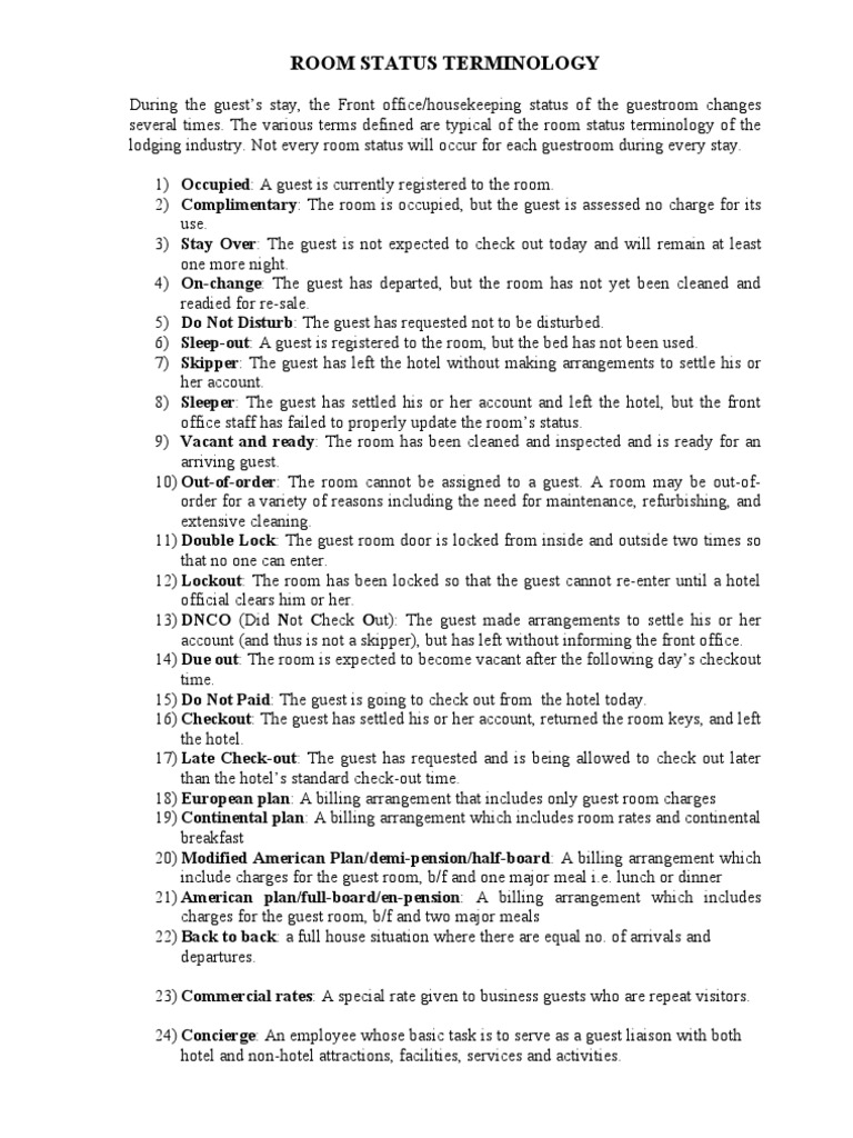 Front Office Terminologies Hotel Meal