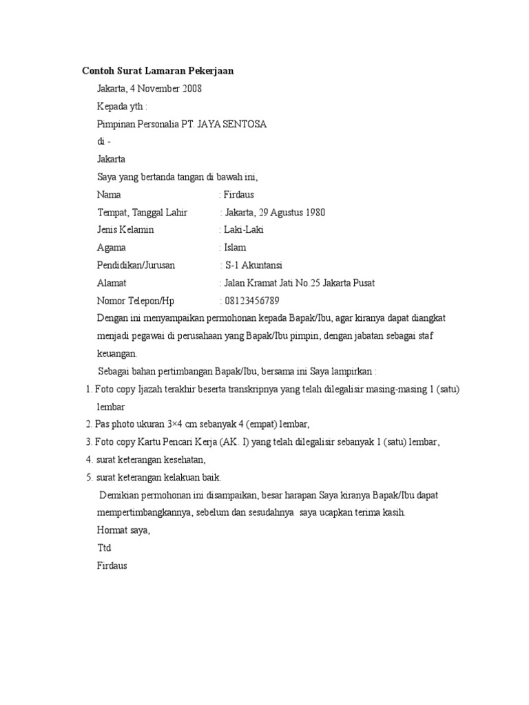 Surat lamaran pekerjaan dapat juga didefinisikan sebagai surat dari calon karyawan kepada calon majiakan yang berisi permintaan agar calon karyawan diberi pekerjaan. Sistematika surat lamaran pekerjaan. Sebagai seorang yang sudah lulu dari jenjang pendidikan baik formal maupun non formal tentunya anda membutuhkan hal hal berkaitan sistematika surat lamaran pekerjaan.