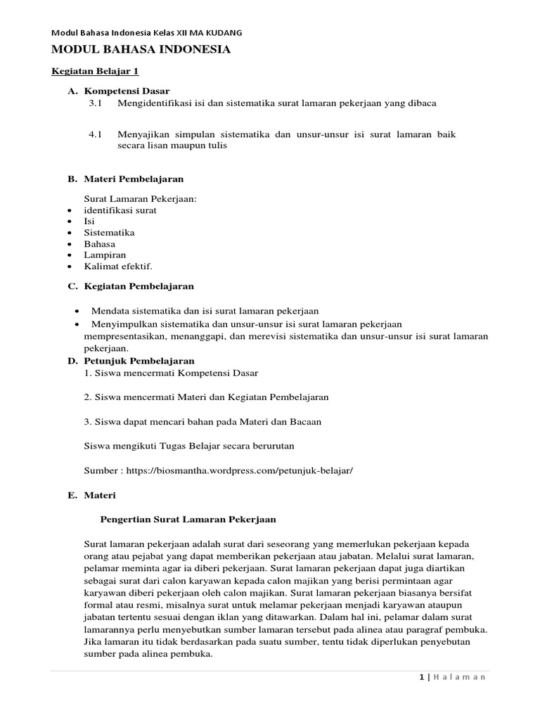Mengidentifikasi Unsur Kebahasaan Surat Lamaran Pekerjaan Zuhri Indonesia