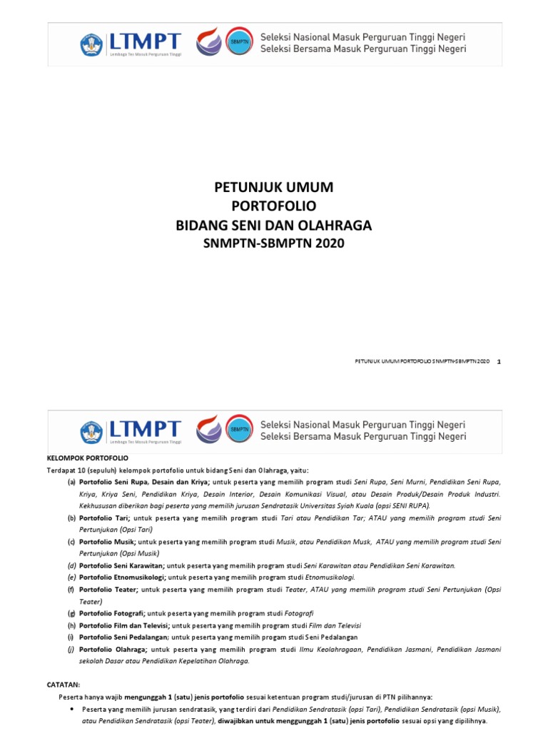 Petunjuk Umum Portofolio Snmptn Sbmptn 2020 2
