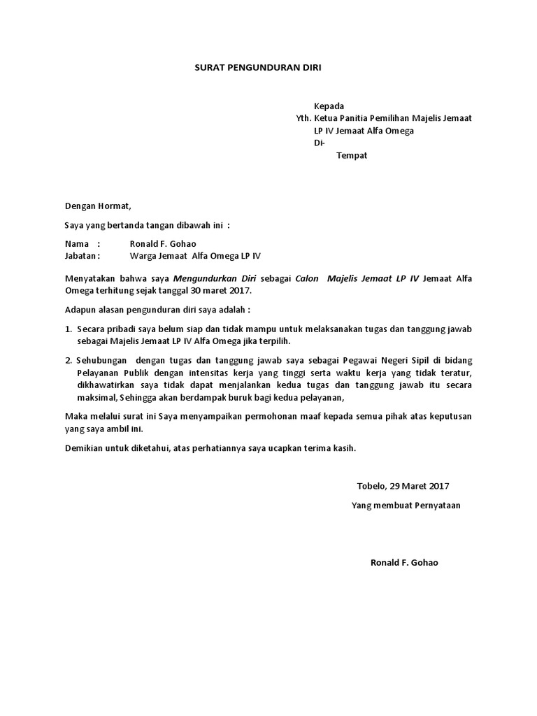 17 Contoh Surat Pengunduran Diri Resmi Yang Baik Dan Sopan