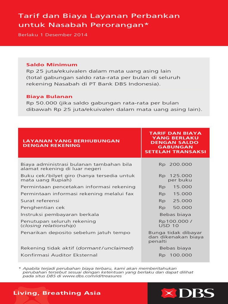 Tarif Dan Biaya Layanan Perbankan Untuk Nasabah Perorangan Saldo Minimum