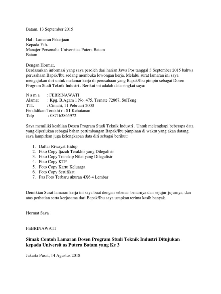 13 Contoh Surat Lamaran Kerja Di Bank Mandiri Bri Bni Bpr Muamalat Bca Dll