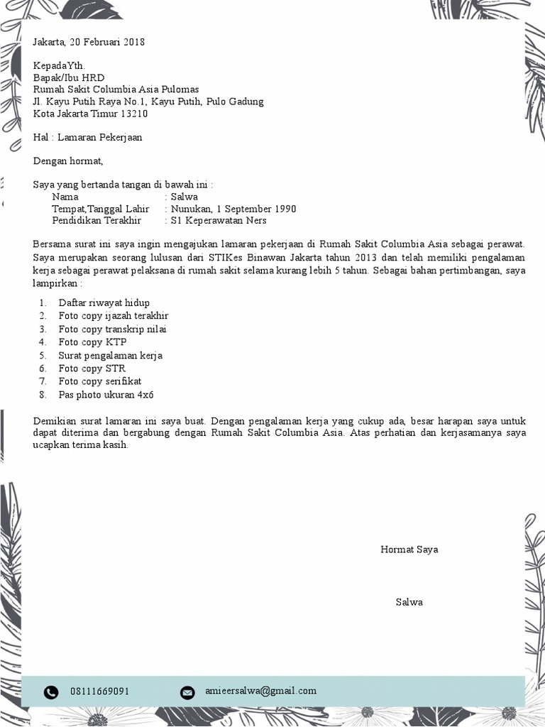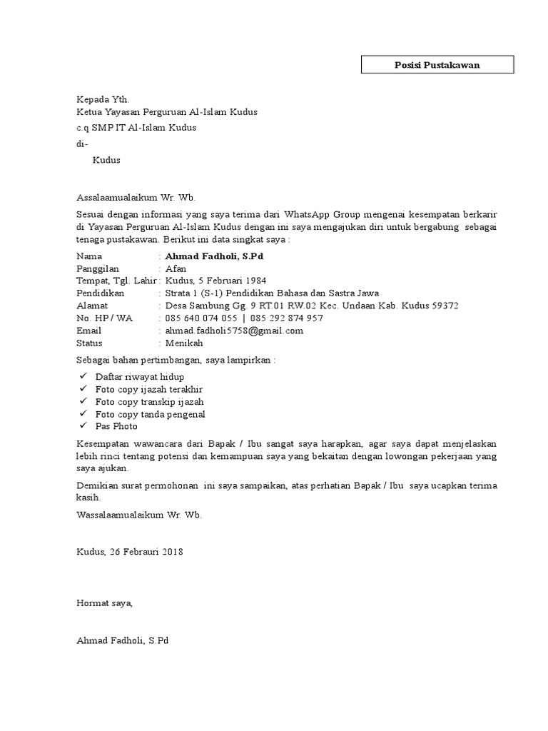 Contoh Surat Lamaran Kerja Rumah Zakat