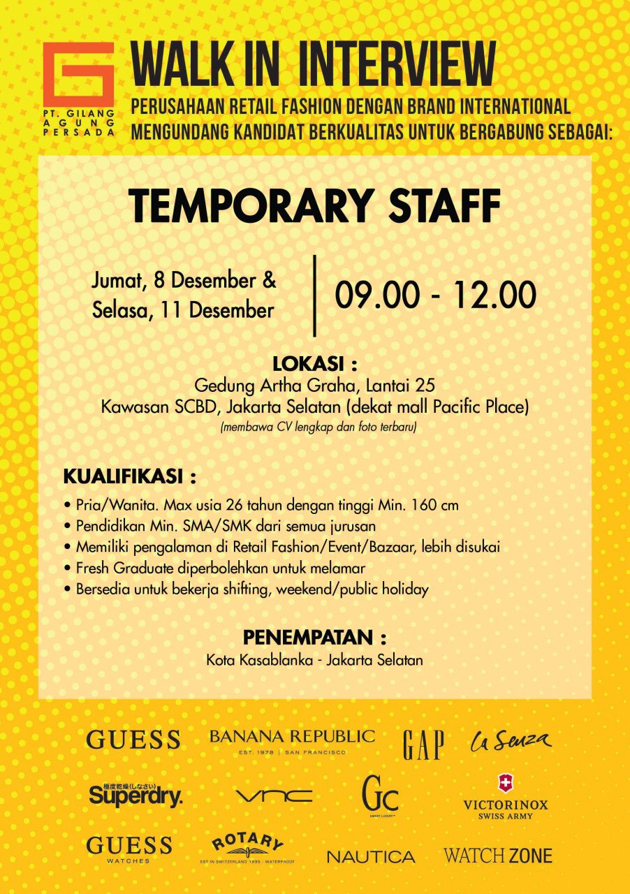 Gilang Agung Persada On Twitter Pt Gap Is Looking For Temporary Staff If You Interest To Become Our Part Please Come To Our Walk In Interview Don T Forget To Bring Your Cv