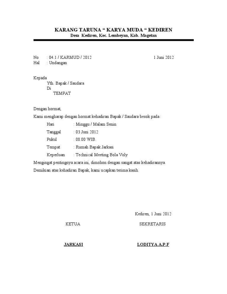Contoh Surat Undangan Rapat Karang Taruna Word
