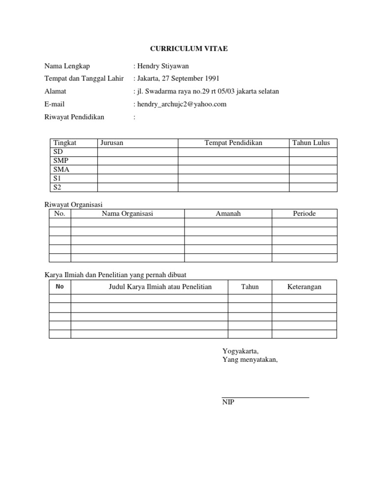 Beberapa Contoh Daftar Riwayat Hidup Yang Baik Dan Benar