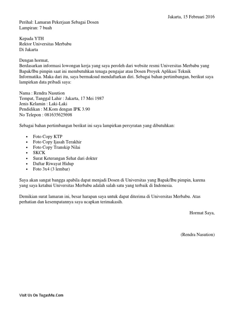 Contoh Surat Lamaran Kerja Dosen Indonesia Dan Inggris Suratku Id