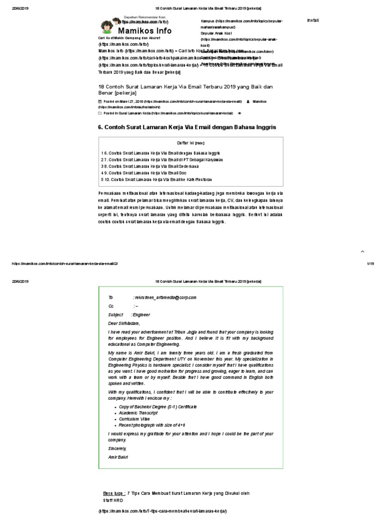 18 Contoh Surat Lamaran Kerja Via Email Terbaru 2019b Pekerja