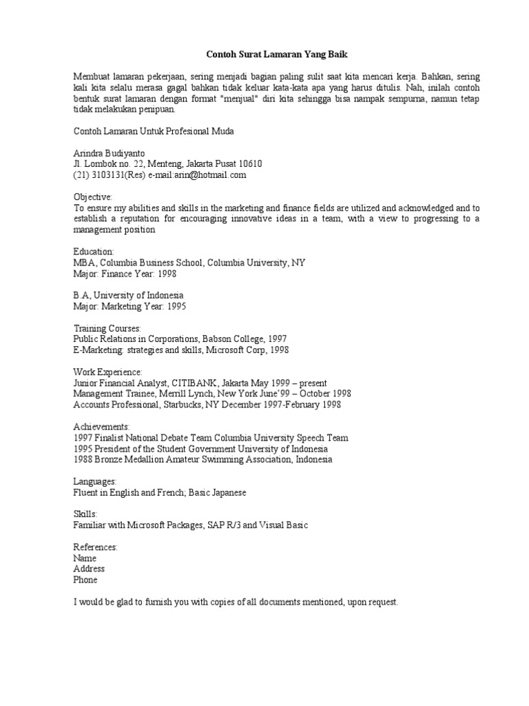 Contoh Surat Lamaran Yang Baik