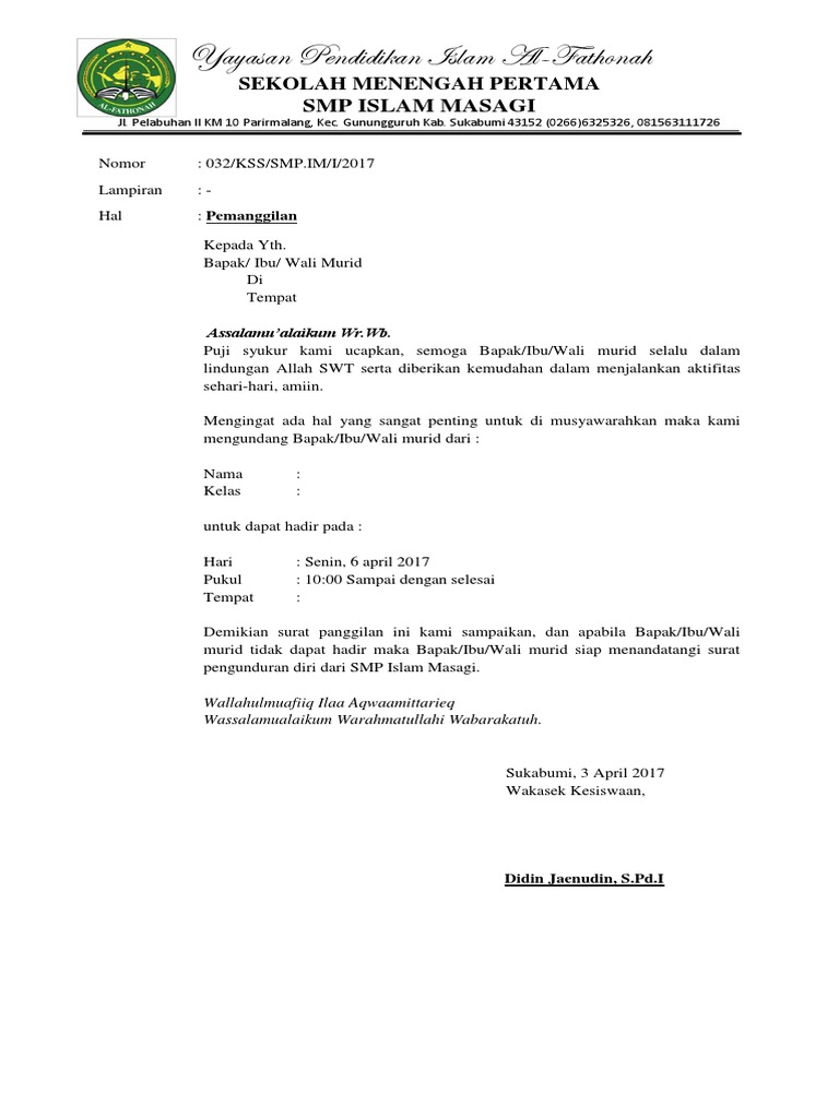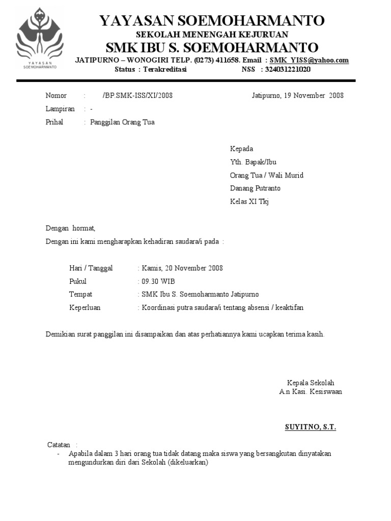Ketua Osis Contoh Surat Dinas Sekolah