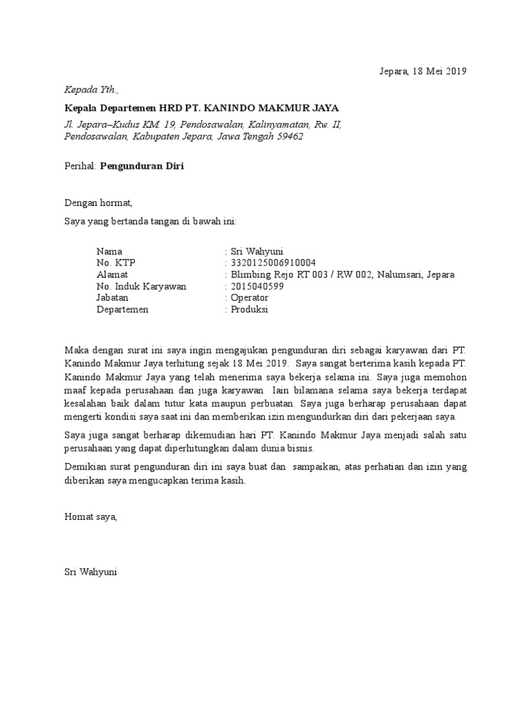 Pdf Contoh Surat Pengunduran Diri Surat Resign Ilmu Bahasa Academia Edu
