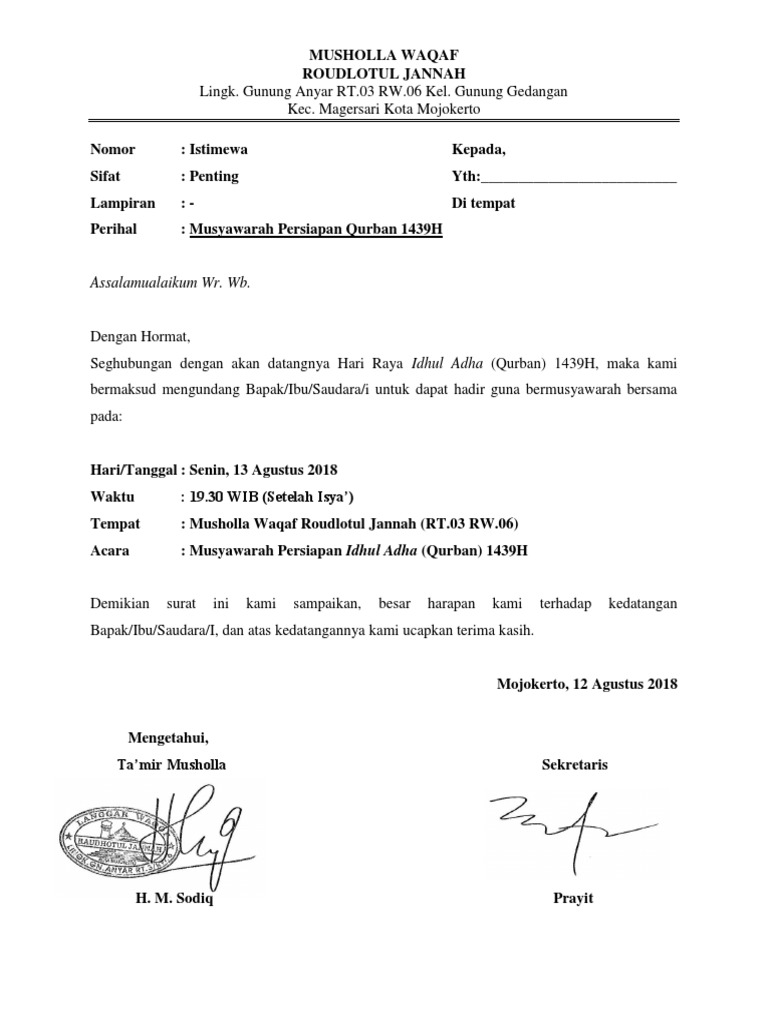 Contoh Surat Undangan Rapat Hari Raya Qurban