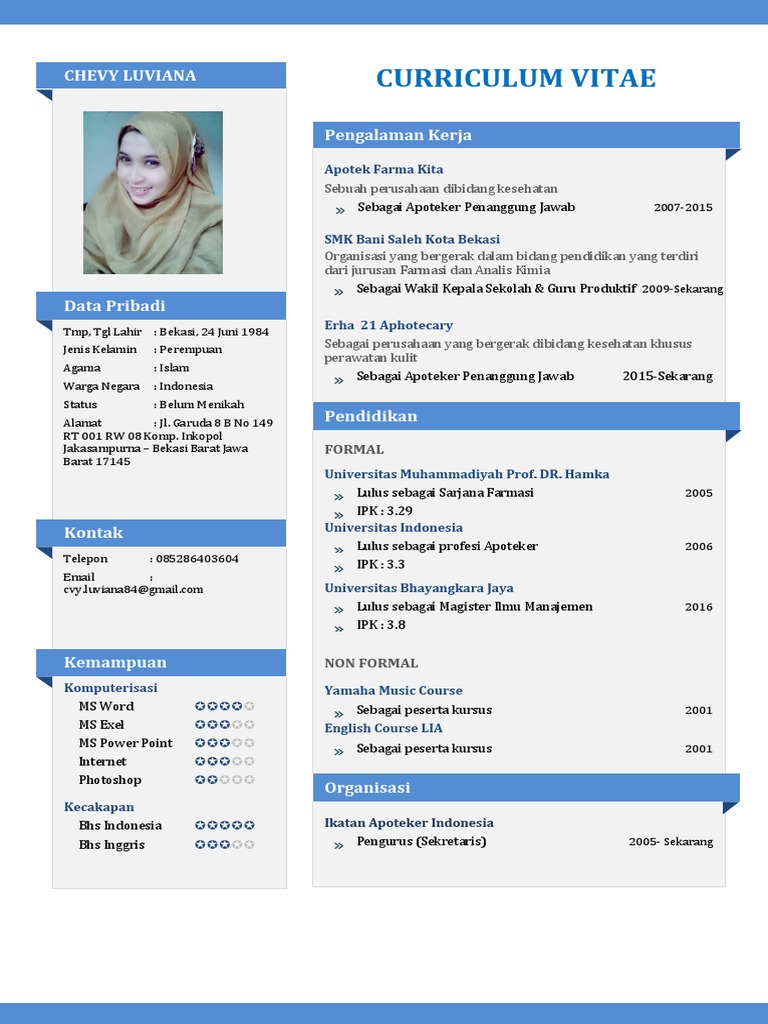 Contoh Curriculum Vitae Yang Baik Dan Benar Word