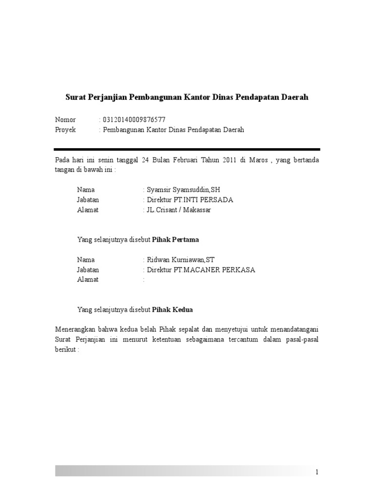 Doc Surat Kontrak Perjanjian Pekerjaan Borongan 1 Suryanto Trihartono Academia Edu