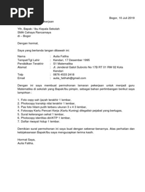 Contoh Surat Lamaran Kerja Guru Sma Gawe Cv