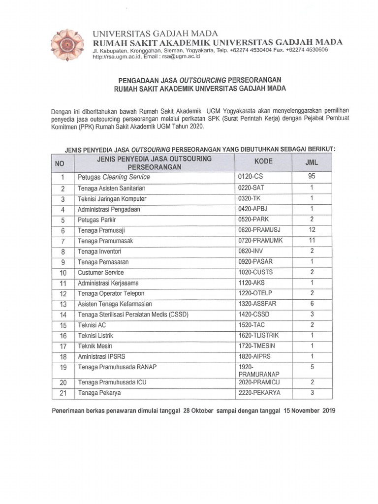Pengumuman Rekruitmen Jasa Perseorangan