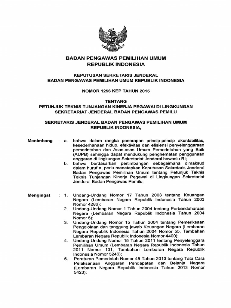 Juknis Tunjangan Kinerja Pegawai Di Lingkungan Bawaslu Ri